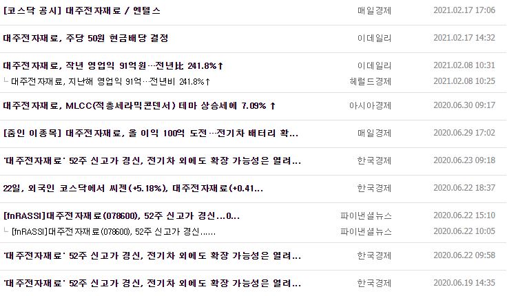 오늘은 LG화학 M&A 한다면 꼭 봐야 하는 2차 전지 주식들(5월 3일 방송) 중 음극재와 관련 있는 대주전자재료와 전해질이 관련있는 천보 2개 기업에 대해 공부하고 요약해보겠습니다.