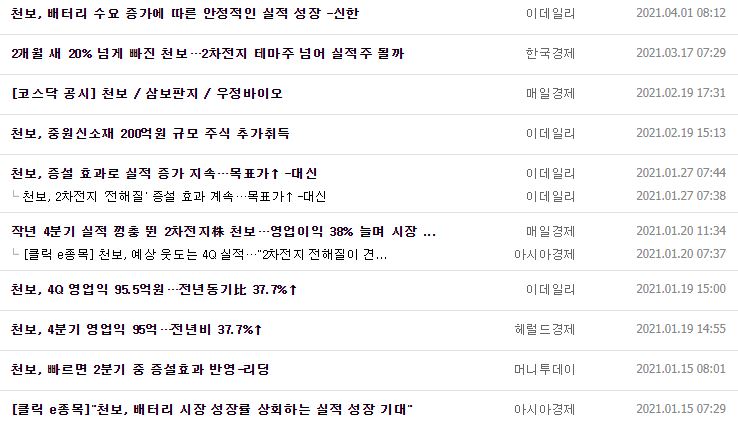 오늘은 달란트투자님의 LG화학 M&A 관련 주 중 2개 기업인 대주전자재료와 천보에 대해 공부해봤습니다. 말씀하셨던 2개 기업 중 천보의 경우에는 재무제표 등의 수치도 괜찮고, 공장 증설과 LG화학의 M&A까지 모멘텀도 있어서 충분히 공부해볼 만한 가치가 있다고 생각합니다. 항상 말씀드리는 것처럼 절대 매매를 추천하는 정보가 아니며 참고하셔서 좋은 투자 기업 발굴해가셨으면 좋겠습니다.