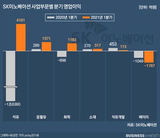 SK이노베이션의 주요제품 매출 구성을 보면 석유사업이 66.2%, 화학사업이 20.6%, 윤활유 6.9%, 배터리 4.71%의 비중을 차지하고 있는데요. 올해 1분기 기준 매출액은 전년 동기 대비 16% 감소했지만, 영업이익은 마이너스에서 흑자로 전환했는데요. 특히, 석유 사업부문의 이익이 가장 컸다고 합니다. 참고로 SK이노베이션은 최근 뜨거운 감자였던 SKIET의 지분을 61.2%나 가지고 있는 기업이기도 합니다.