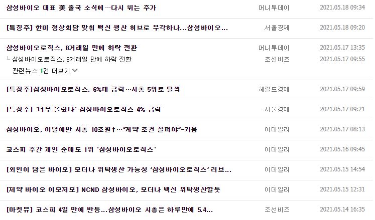 기릿님의 주식노트 한미 정상회담 수혜주 백신편(삼성바이오로직스, SK바이오사이언스)
