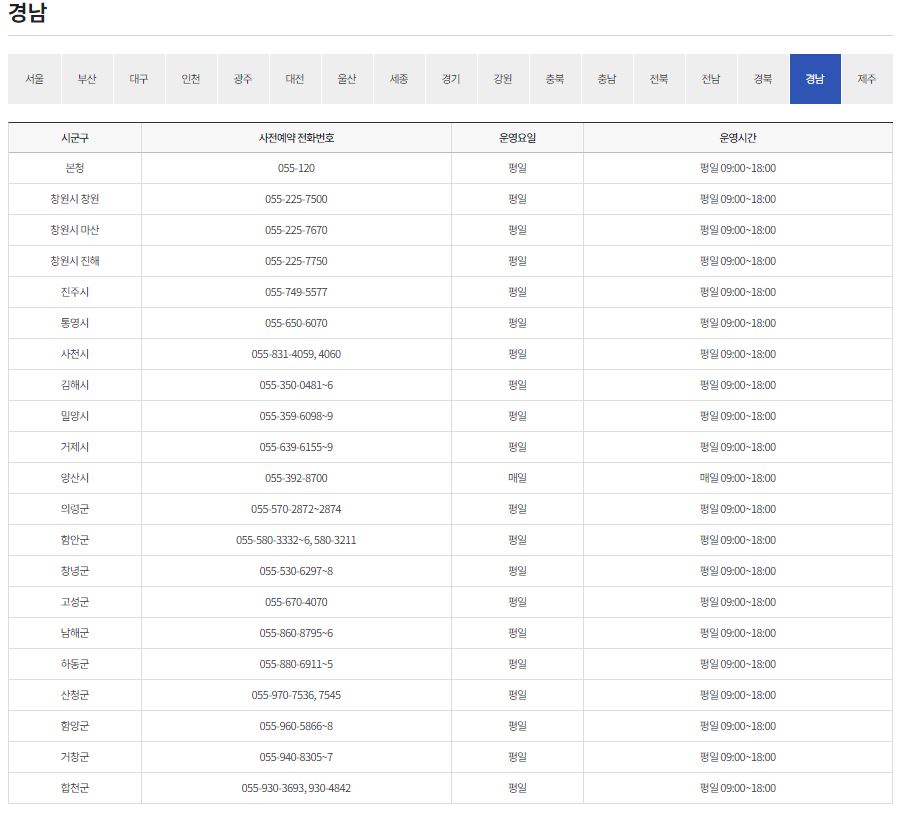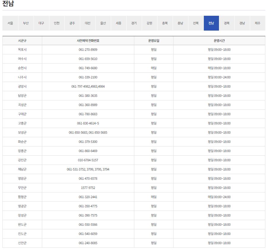 코로나19 예방접종 전화예약 지역별 연락처 공유(전남, 경북, 경남 )