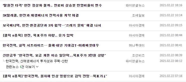 오늘은 한국 전력에 대해 공부했습니다.
