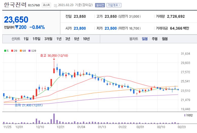 1. 2월 23일 한국전력의 상황