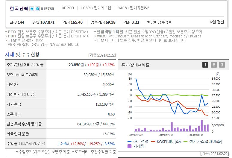 한국전력은 2월 23일 기준