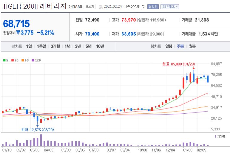 5위. TIGER 200 IT 레버리지