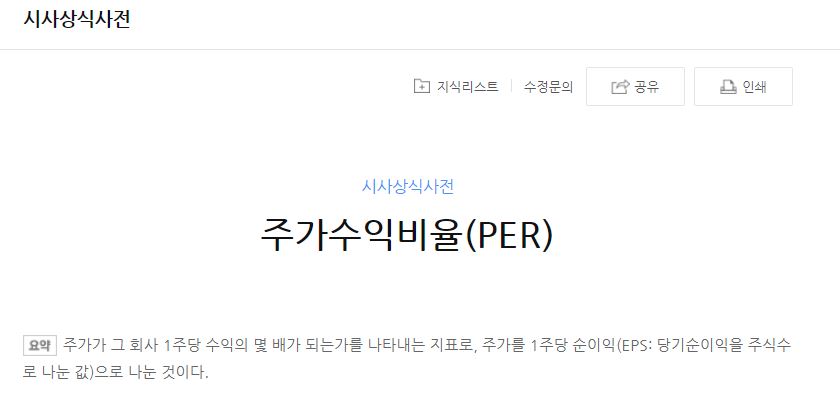 즉, PER이 낮으면 낮을 수록 좋다는 의미이며