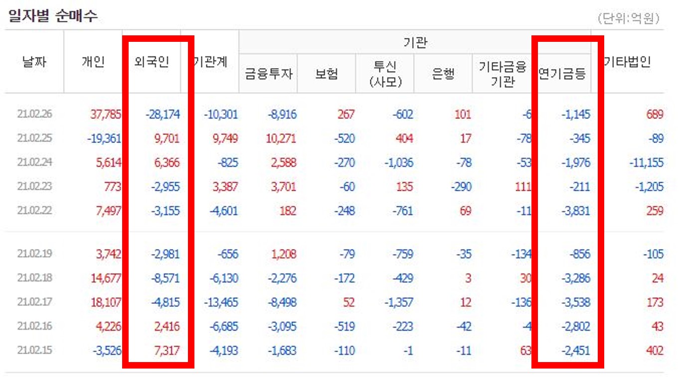 참고로 연기금이 2월 22일부터 2월 26일까지