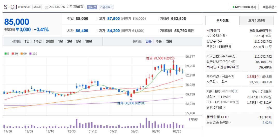 에스오일의 1분기 예상 영업이익은 1,731억원으로 흑자전환이 기대되고