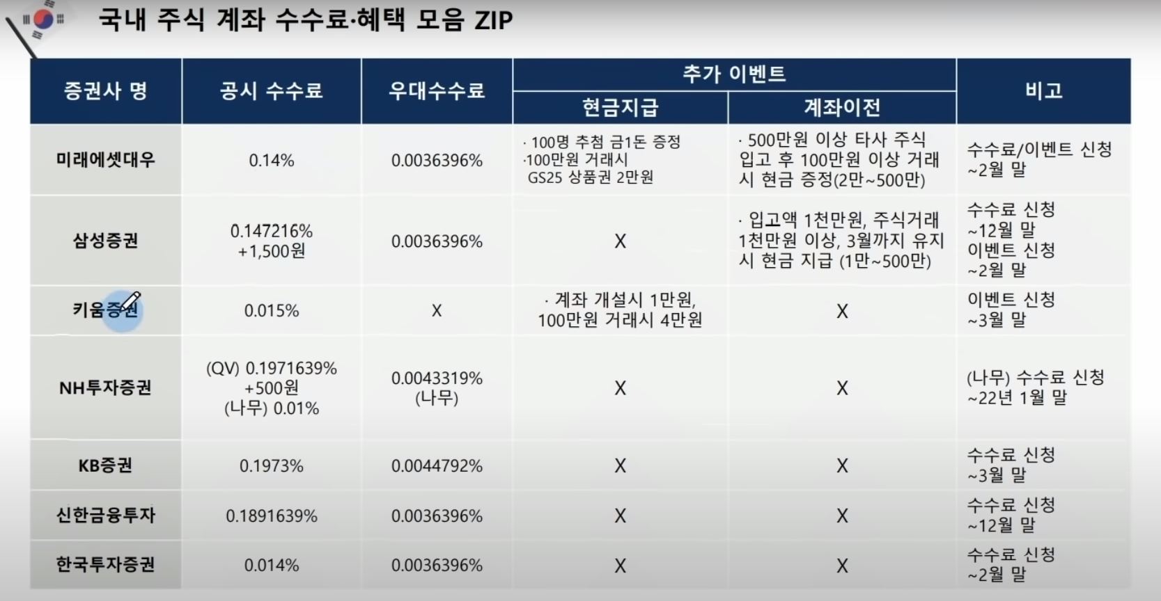 # 국내주식 7개사 수수료 및 혜택 비교