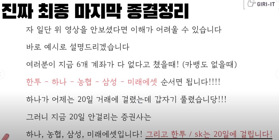 나머지 한국투자증권과 SK증권은 20영업일에 걸린다고 합니다.