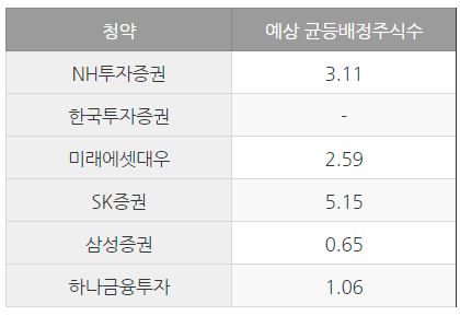 삼성증권 예상 균등배정주식수는 0.65이고,