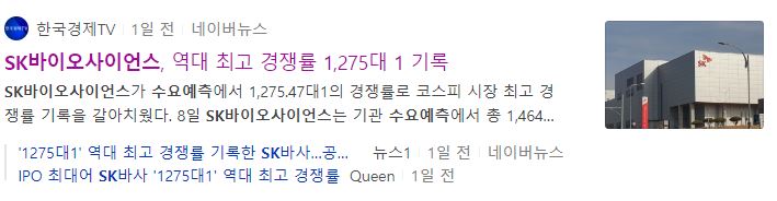 오늘은 SK바이오사이언스 청약 1일차에 대해 공부했습니다.