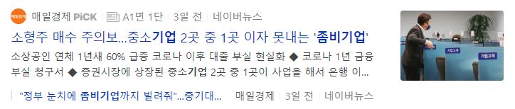 좀비기업이란 사업을 하면서 은행 이자도 못 내는