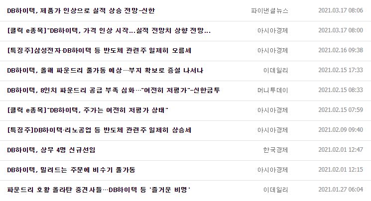 E트렌드에서 소개한 DB하이텍도 파운드리 관련된 이슈로 수혜를 볼 것으로 소개했었습니다.