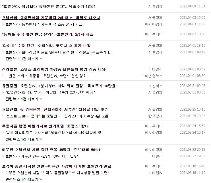 호텔신라의 주요 이슈는 2가지였는데요. 첫 번째는 면세점 지분 투자 관련 1심에서 승소했던 호텔신라가 2심에서는 패소했다는 뉴스였습니다. 관련하여 호텔신라에서는 상고 여부를 검토 중이라고 하네요. 두 번째는 빠른 흑자 전환입니다. 면세 부문에서 영업이익이 전년 동기 대비 684억원 늘어날 것으로 전망하며, 프로모션 안정화와 공항점의 임차료 가면 혜택, 적자였던 T1 사업 철수 효과 덕분이라고 하는데요.