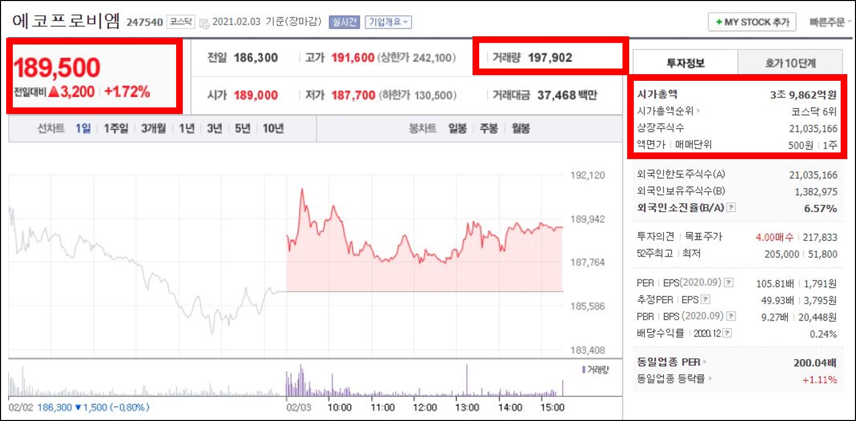 코스닥 6위인 에코프로비엠은 2차 전지 관련 제조업체입니다.