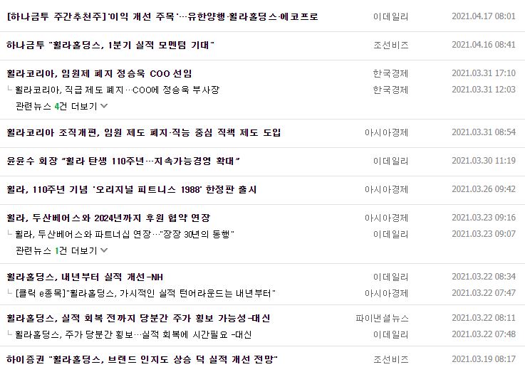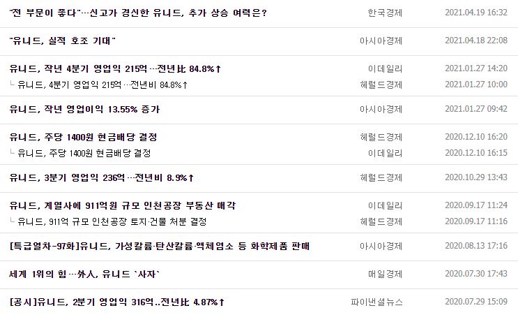 오늘은 염승환 부장님의 맘 편히 담아갈 수 있는 종목 중 나머지 2개 기업인 유니드, 휠라홀딩스에 대해 공부해봤습니다. 말씀하셨던 2개 기업은 최근에 염승환 부장님께서 추천해주신 기업들 중에 저는 괜찮다고 느끼는 편인데요. 추가로 공부해서 투자 여부를 고민해봐야겠습니다. 항상 말씀드리는 것처럼 절대 매매를 추천하는 정보가 아니며 참고하셔서 좋은 투자 기업 발굴해가셨으면 좋겠습니다.